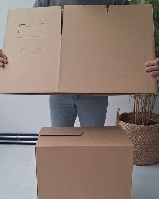 Our moving boxes with autolock bottom and self-closing top flaps ensure that you are ready to move in no time. No hassle with rolls of tape or difficult folding because moving is stressful enough. So make packing easier!