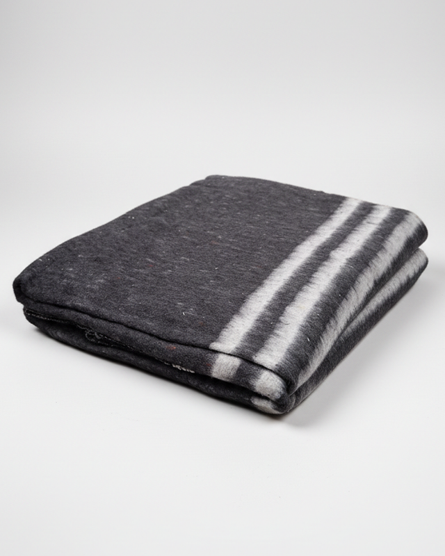 • Donkergrijze verhuisdeken met 3 witte banen